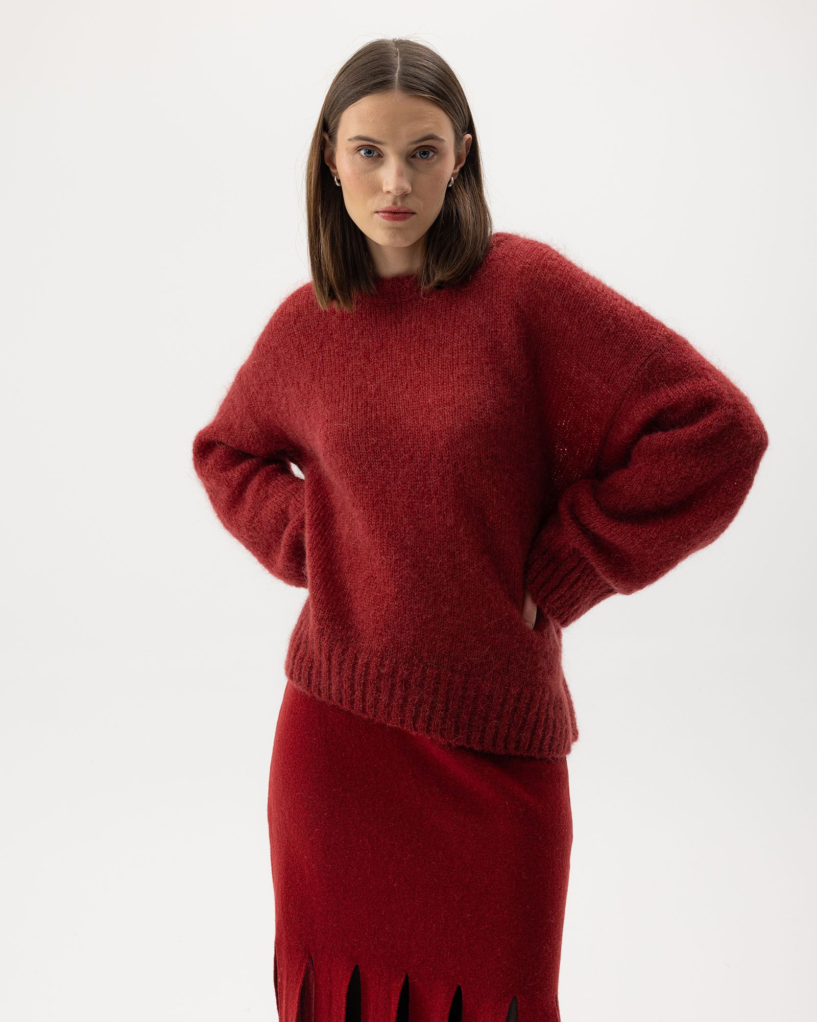 En röd stickad tröja är ett plagg som skapar värme, färg och karaktär – oavsett säsong. Den röda kulören blir en tydlig accent i en i övrigt nedtonad garderob och passar både som vardagsplagg och som ett mer uttrycksfullt inslag i höst- och vintergarderoben.