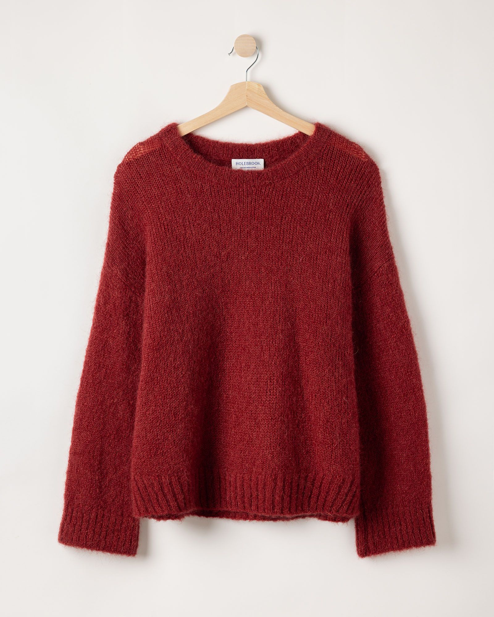 En röd stickad tröja i naturmaterial håller sig fin längre när den tas om hand på rätt sätt. Vädra plagget mellan användningarna och låt det vila, då ullen renar sig själv och sällan behöver tvätt. För att tröjan ska behålla sin passform över tid är det bäst att förvara den liggande.
