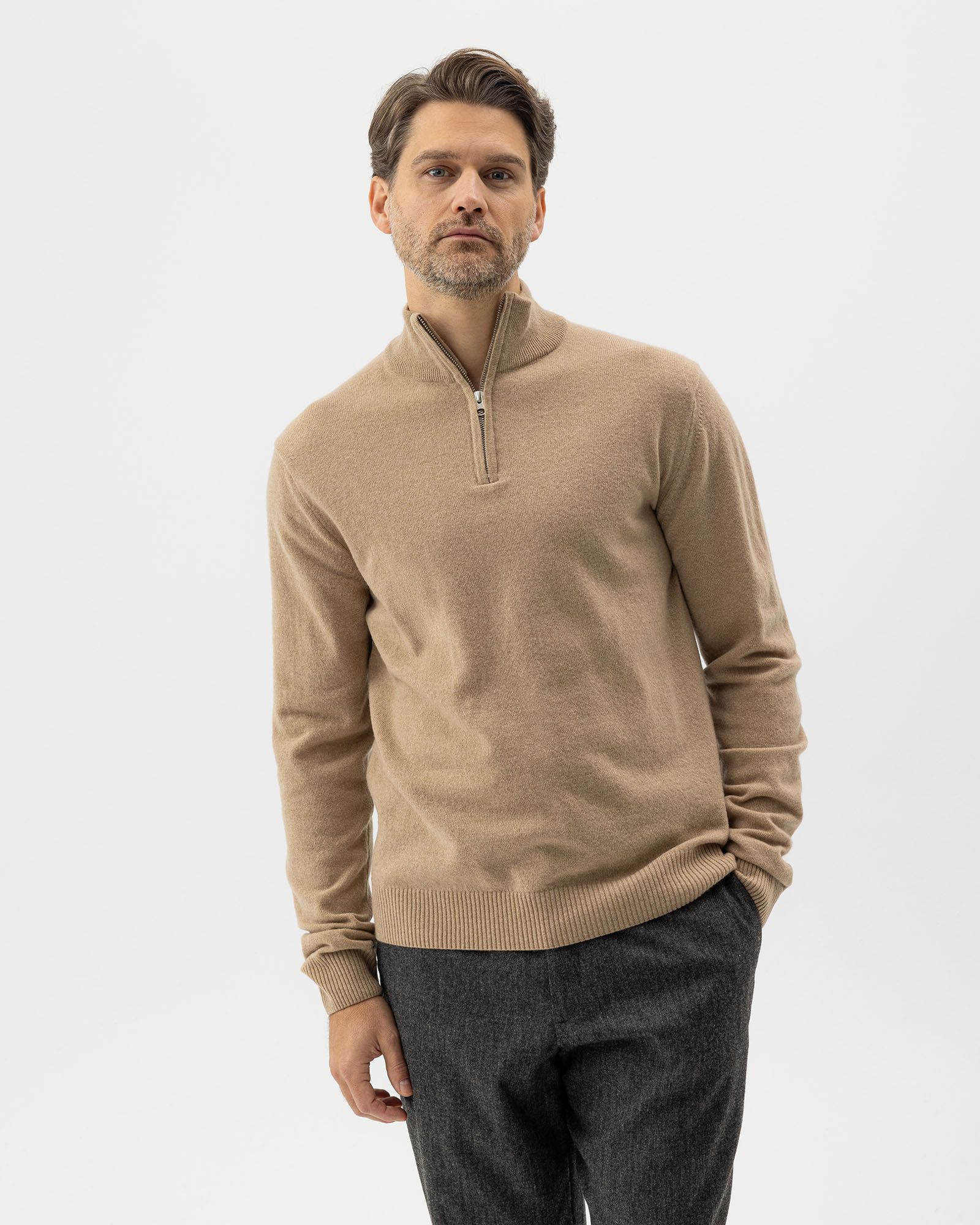 En stickad herrtröja med dragkedja är enkel att variera, oavsett tillfälle. Bär den över en skjorta för en klassisk stil eller med en t-shirt och byxor för en mer avslappnad look. När temperaturen sjunker fungerar den perfekt som ett mellanlager under jackan – tillräckligt varm för kyliga dagar men ändå lätt och följsam. Matcha med accessoarer som en mössa eller halsduk i samma ton för en genomtänkt helhet.